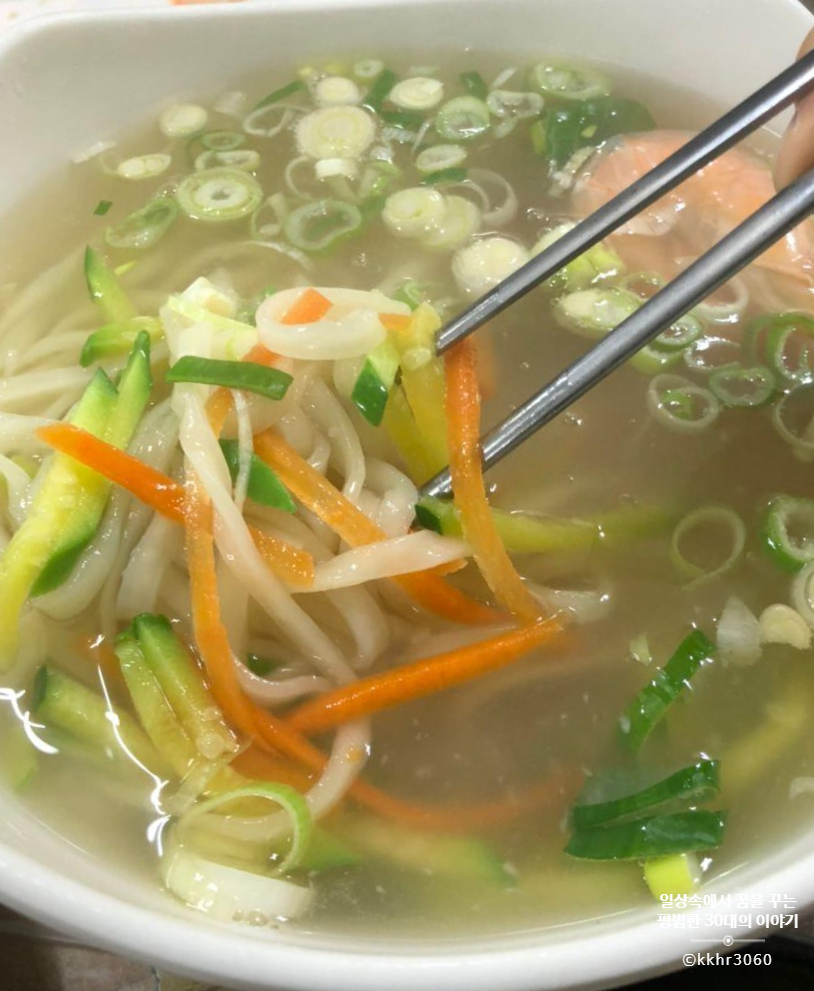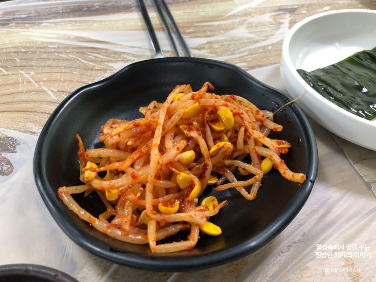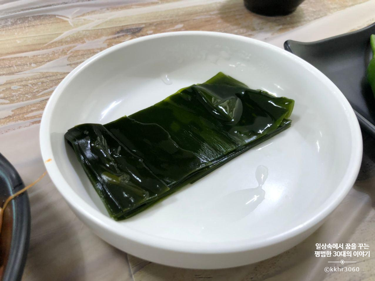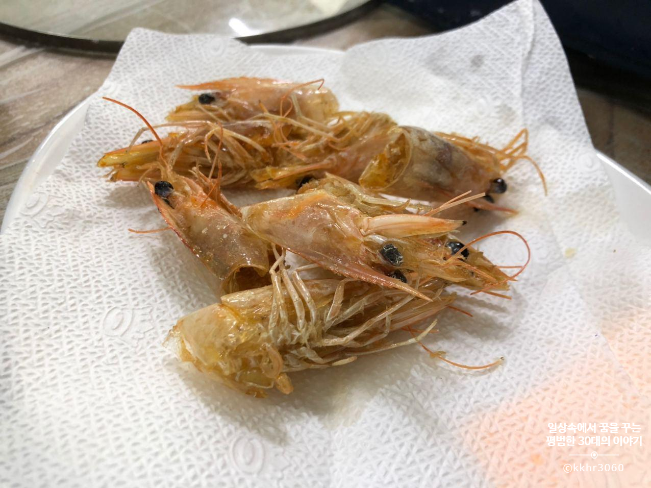새우가 익는 동안 열심히 생다시마와 콩나물을 여러 번 가져다 먹었다. 새우가 꽤 크고 두툼하다. 맛은 누구나 알고 있는 바로 그 맛. 칼국수도 누구나 알고 있는 바로 그 맛. 그나마 색다르게 맛있었던 건 새우 머리 튀김인데 바삭하면서 고소해서 배가 부른데도 계속 손이 갔다.