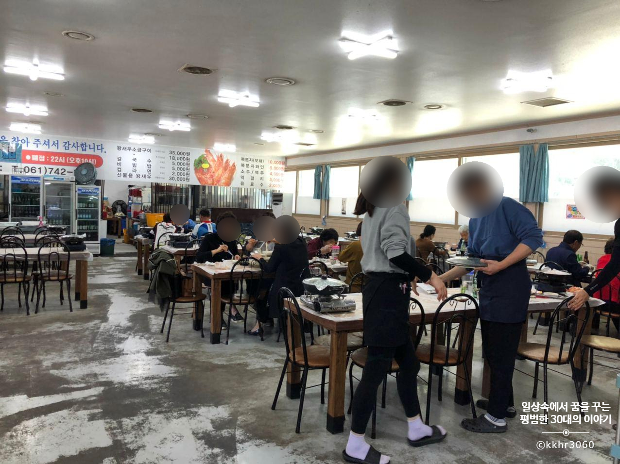 굳이 순천까지 와서 갈 곳은 아니다 싶다.(여행객 입장에서는 지역 특색이 묻어나는 음식은 아니므로) 우리는 새우 제철인 이 시기에 새우가 먹고 싶었을 뿐이고 마침 우리가 여행 중인 지역 사진작가님이 추천해 준 곳이 새우구이 식당이어서 가게 되었다. 순천에 살고 있다면 새우구이 먹으러 종종 갔을 것 같다.