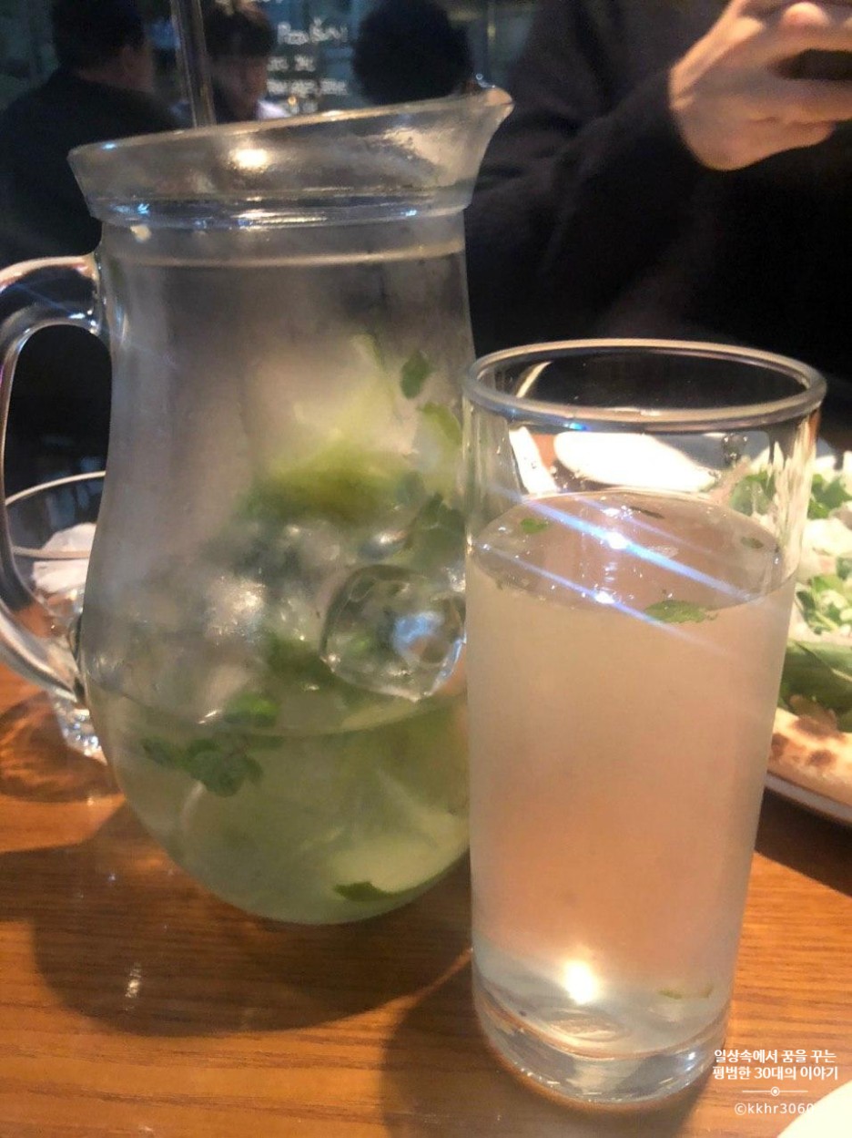 특별한 날에 술 못 마시는 우리 둘을 위해 주문한 무알코올 모히또! 분위기 내기 이만한 게 없다. 맛도 깔끔하니 레모네이드보다 맛있었다.