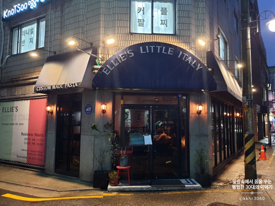 코로나 바이러스로 인해 지난주까지 재택근무를 하며 집에서 방콕과 동시에 삼시 세끼 차려먹으면서 지냈었다. 하지만 이번 주부터 회사로 출근하기 시작했는데 그럼에도 저녁만큼은 집에서 해먹으려고 노력했다. 그러다가 이번 주 화요일 짝꿍이 본인 생일날만큼은 집에서 못 해먹는 화덕피자가 꼭 먹고 싶다고 해서 고민 끝에 내가 다니는 회사 근처에 있는 엘리스리틀이태리에 갔다. 이태리식 화덕피자를 무척이나 좋아하는 짝꿍 덕에 내 평생 가본 화덕피자 식당 보다 짝꿍을 만나면서 다닌 화덕피자 식당이 훨씬 더 많다. 나는 토핑이 잔뜩 올라간 피자에 익숙해져 있던 터라 처음에는 얇은 도우에 토핑도 얼마 올라가지 않은 비싸디 비싼 피자를 짝꿍이 왜 그리 좋아하는지 이해하지 못했으나 점점 먹다 보니 오히려 이제는 토핑이 잔뜩 올라간 피자헛, 도미노, 미스터 피자 같은 곳 피자는 도저히 못 먹겠더라. 이제는 바삭한 얇은 도우에 신선한 재료들이 올라간 집에서 만든 것 같은 푸근한 이태리식 피자가 더 좋다.