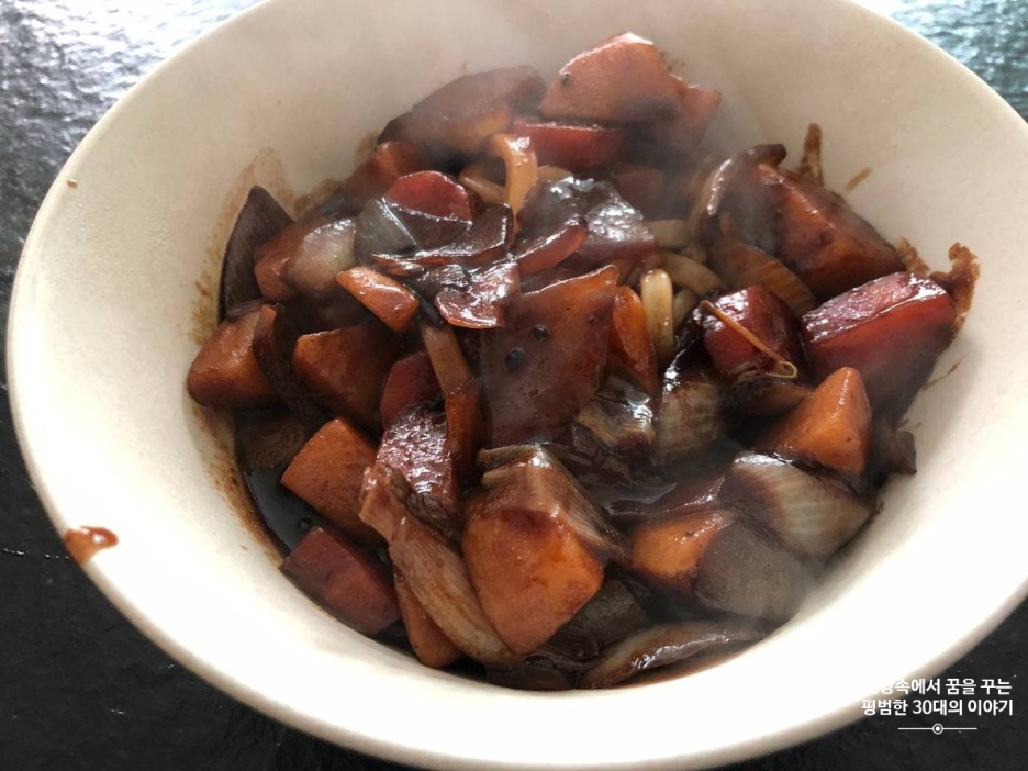 짜장면 - 당근, 감자, 양파, 나가사끼우동면, 짜장 가루