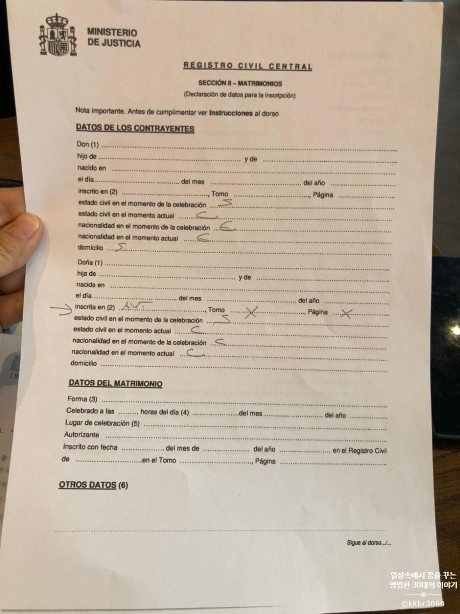 대체 스페인 대사관을 몇 번을 가는 건지... 서울이 아닌 지방에 사시는 분들은 매번 올라올 수도 없는 노릇이고 정말 양국에 혼인신고하는 거 너무 힘들다.