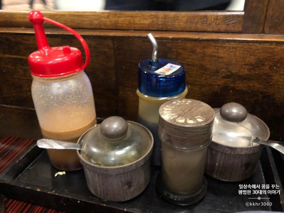 중앙 해장의 반찬은 김치와 깍두기로 단출하다. 옆에는 소스를 제조해서 먹을 수 있도록 다양한 재료들이 각 테이블마다 준비되어 있다. 김치와 깍두기는 살짝 덜 익은 상태인데 간이 짜지 않고 식감이 오독오독하니 좋아 자꾸만 먹게 되는 신기한 매력이 있다.