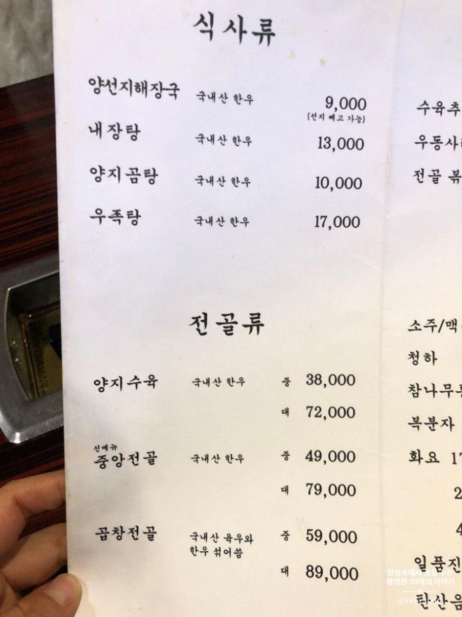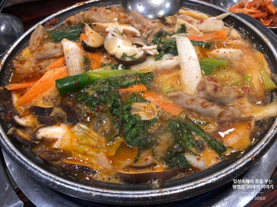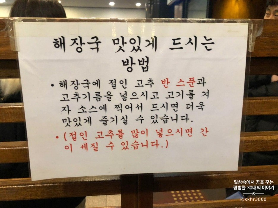 이 집 해장국이 그렇게 맛있다는데 희한하게 나는 해장국은 한 번도 안 먹어봤다. 해장국을 별로 좋아하지도 않거니와 맨날 오면 곱창전골만 먹게 된다. 해장국은 우리 집 근처에 있는 양평 해장국도 충분히 맛있고 괜찮은 식당들이 꽤 많다. 그런데 곱창전골을 맛있게 하는 곳을 찾기는 어렵기 때문에 여길 오면 꼭 곱창전골만 주문하게 된다.