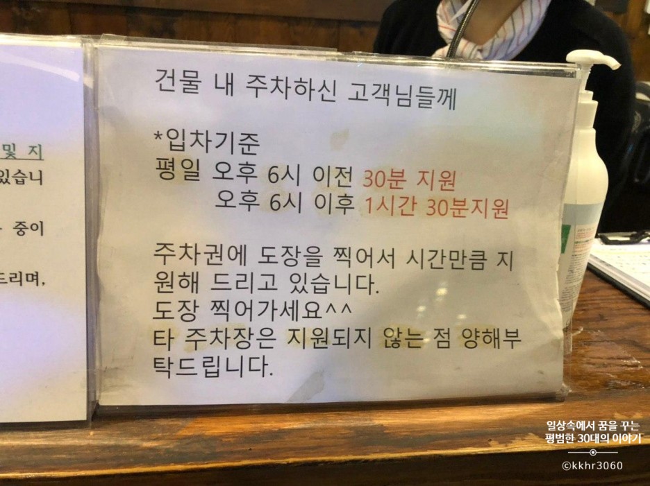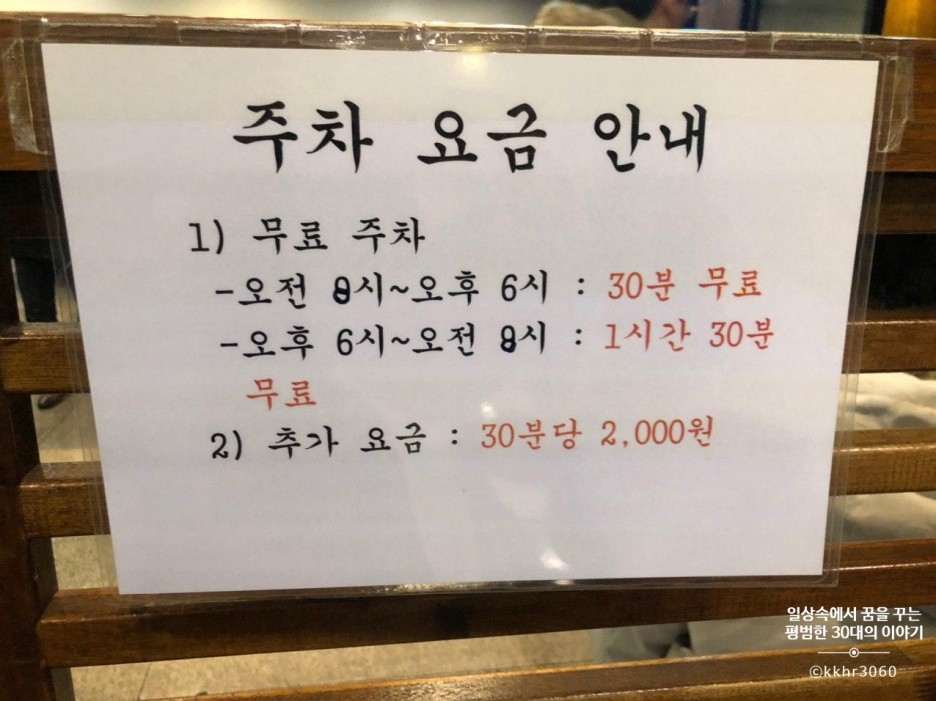 주차요금이 삼성역 주변 치고 나쁘지 않고 평일 오후 6시 이후에는 1시간 30분이나 지원이 된다니 좋다. 그런데 여기 주차장에 주차하는 게 엄청 힘들다는 게 함정! 원래 맛집 갈 때는 차를 두고 다니는 게 제일 좋다.