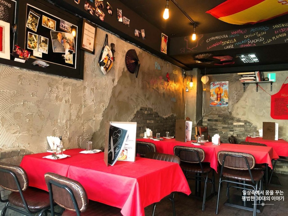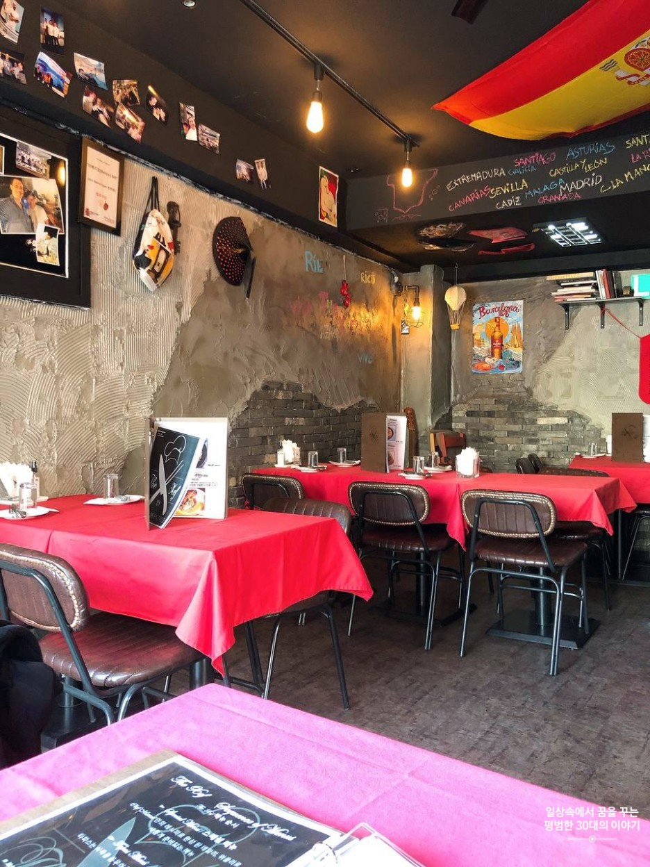 짝꿍이 3월 말까지 작년에 쓰지 못한 휴가를 다 사용해야 해서 3월 31일 휴가를 냈다. 휴가인데 어디를 가고 싶냐고 물어봤더니 스페인 음식점에 가고 싶다길래 이전에 그리스 음식점 노스 티모에 갔을 때, 주방장님이 추천해 준 스페인 음식점이 생각나 며칠 전에 미리 예약하고 방문했다. 음식점의 특성상 예약을 꼭 하고 방문하는 것이 좋을 듯한데 아니나 다를까 우리 이외의 손님도 다 예약하고 방문한 손님이더라.