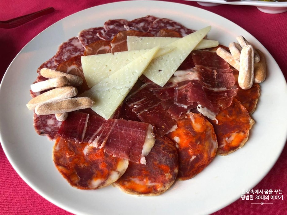 짝꿍은 들어서자마자 가장 먼저 주방을 기웃거리더니 환하게 웃기에 왜 그러냐고 물어보니 주방장이 까딸루냐 사람이라는 거다. 그래서 내가 어떻게 얼굴만 보고 아냐고 했더니 느낌이 그렇단다. 그러다가 얼마 안 지나 주방장과 둘이 까달루냐어로 신나게 대화를 하더라~ 평일 이른 저녁 시간이라 손님이 우리 밖에 없어서 다행이었다는;;;