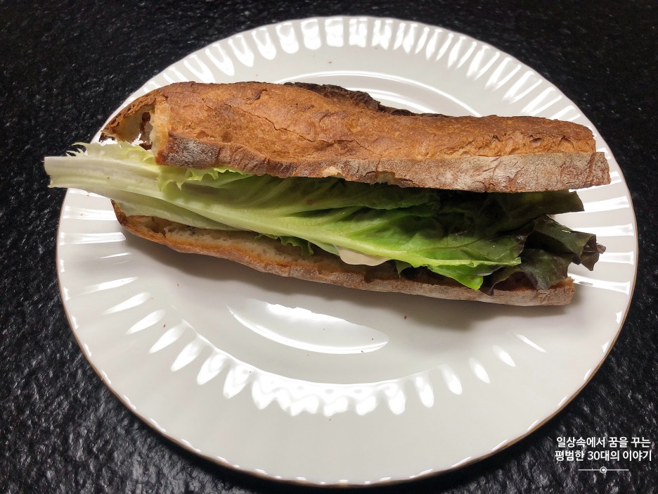 참치 바게트 샌드위치 - 바게트, 참치, 마요네즈, 상추