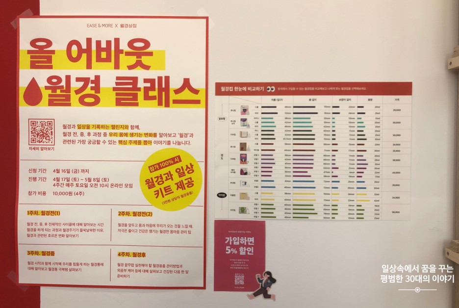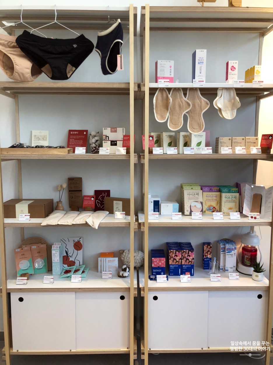 화창한 주말 오후, 제로웨이스트샵 비그린에 갔다가 그 옆에 있는 월경상점을 호기심에 방문했다. 월경과 관련된 다양한 제품을 파는 곳이더라. 이런 곳은 앞으로 여기저기 더 많이 생겼으면 하는 바램!