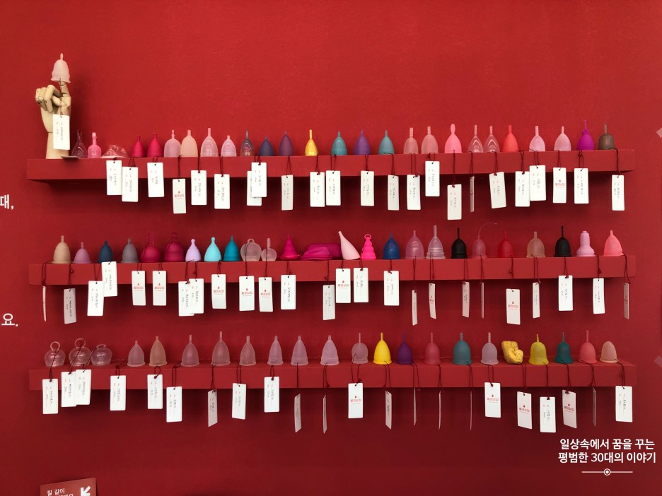 내부에 들어서자 이곳은 그야말로 신세계! 그렇지 않아도 요즘 면 생리대에 관심이 생겨서 알아보던 중이었는데 여기엔 면 생리대 뿐만 아니라 월경 컵도 있었는데 그 종류가 어마어마하게 많았다. 짝꿍과 논의를 하며 생각해 보니 월경 컵이 요즘 제로 웨이스트를 실천하는 내 상황에 더 맞지 않을까 싶어 꼼꼼히 제품을 둘러보았다. 월경상점 직원분께서 나의 궁금점을 친절하게 해소해 주셔서 너무 좋았다. 그 자리에서 제품을 바로 사고 싶은 마음이 굴뚝같았지만 월경 컵의 경우, 내 질 길이에 따라 선택할 수 있는 제품이 달라지기 때문에 미리 질 길이를 재고 가야 구매를 할 수 있어 결국 사진 못했다. 조만간 다시 방문해 나도 월경 컵에 입문하리라! 월경에 필요한 품질 좋은 다양한 제품을 팔고 있기 때문에 생리를 하는 여성이라면 누구에게나 강추하고 싶다!