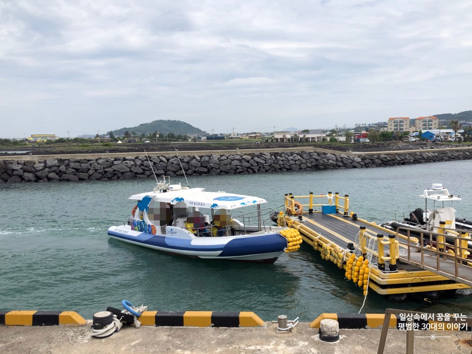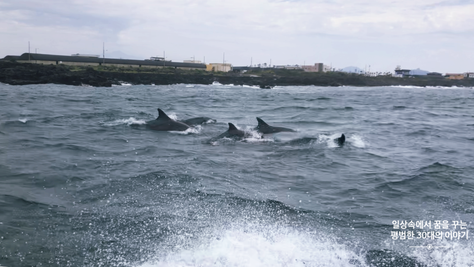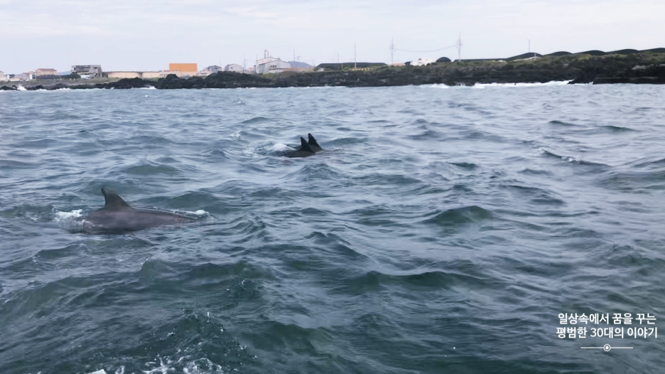 뱃멀미를 좀 하는 편이라 배가 너무 작을까 걱정했는데 다행히 꽤 커서 안심했다. 넘실대는 파도를 가로지르며 한참을 선장님이 운전하시는 배를 타고 나갔다. 탐사가 시작된 지 30분쯤 지났을까 역시 내 생에 야생 돌고래는 못 보는 건가 반포기 상태였던 그때, 사람들의 탄식에 고개를 들어보니 저 멀리 돌고래 떼가 보이더라. 그때의 감동이란! 배의 시동을 끄고 잠시 기다리니 돌고래가 내 마음을 읽은 건지 배 가까이까지 와줬다. 정말 야생 돌고래 탐사가 이번 제주여행의 최고 하이라이트가 아니었나 싶다.