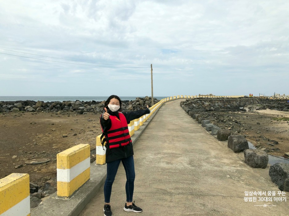 우리는 평일 11시로 예약을 했다. 날씨가 흐려 이번에도 취소가 될까 무척 걱정을 했는데 다행히 탐사가 가능하다는 안내 문자를 받고 아침부터 들뜬 마음으로 동일리포구로 향했다. 안내해 주시는 분께 대략적인 안내사항을 전달받고 구명조끼를 건네받았다. (필요한 사람에게는 우비 같은 겉옷도 무료로 대여해 주시더라.)