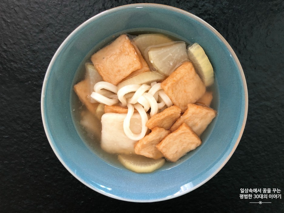 어묵 가락국수 - 멸치, 다시마, 무, 어묵, 가락국수면, 참치 액, 소금