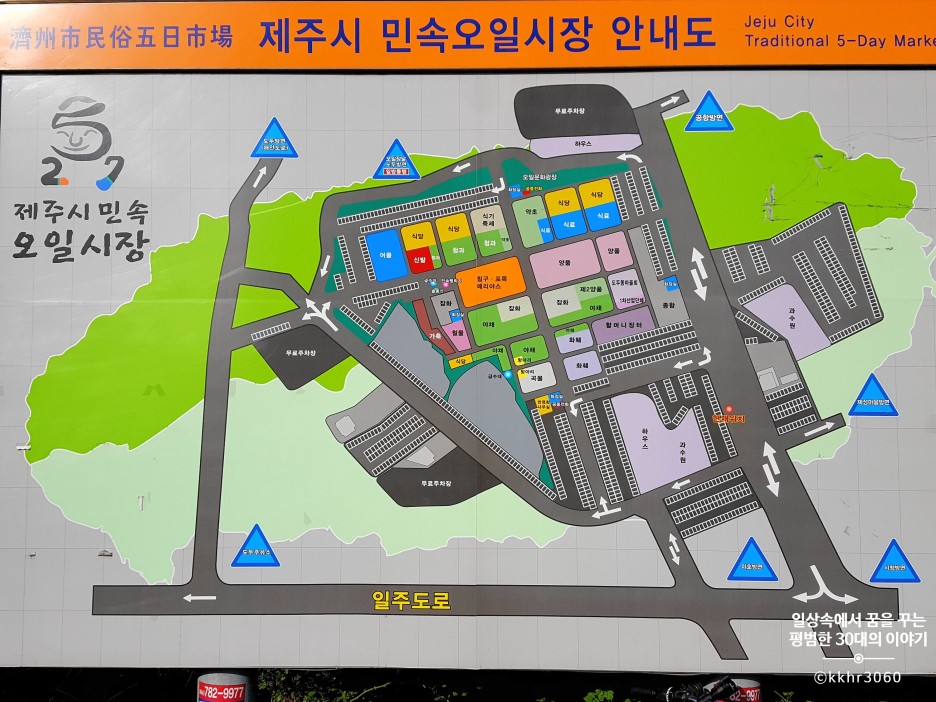 이번에 영국에서 한국에 놀러 온 친구에게 제주도의 어디를 소개해주면 좋을까 고민하다가 일정이 딱 맞아서 제주시 민속 오일 시장에 갔다. 매월 2, 7, 12, 17, 22, 27일만 열리는 재래시장이라 일정 맞추기가 쉽지 않아 나도 여태 한 번도 못 가본 곳이다.