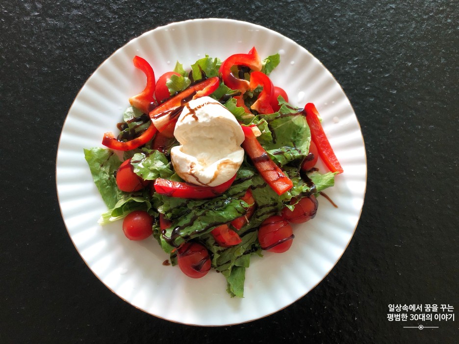 부라타치즈 샐러드 - 부라타치즈, 방울토마토, 파프리카, 로메인, 발사믹식초, 올리브오일