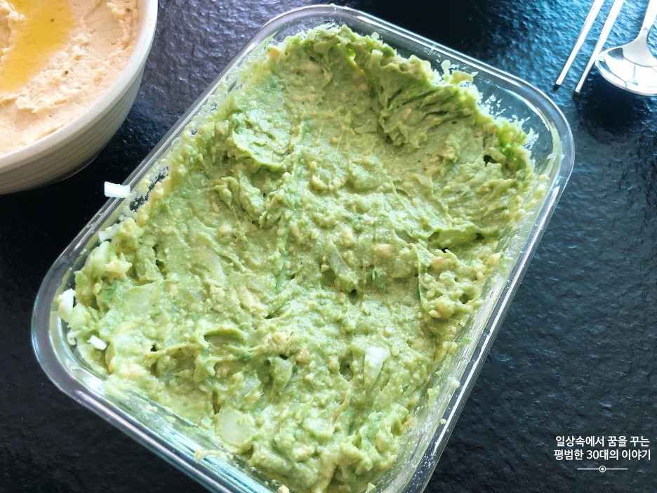 과카몰리 - 아보카도, 양파, 소금, 올리브오일, 라임즙