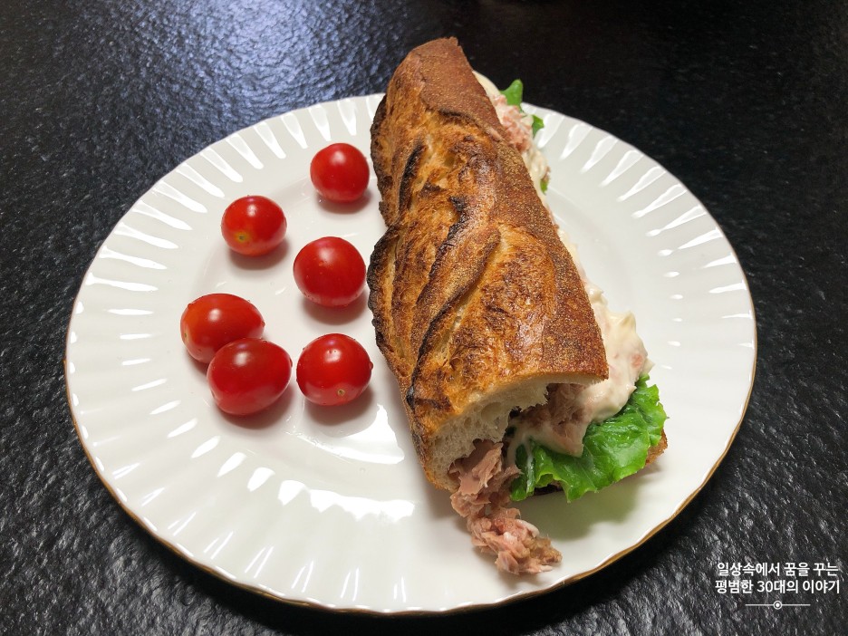 바게트 샌드위치 - 로메인, 참치, 마요네즈, 바게트, 방울토마토