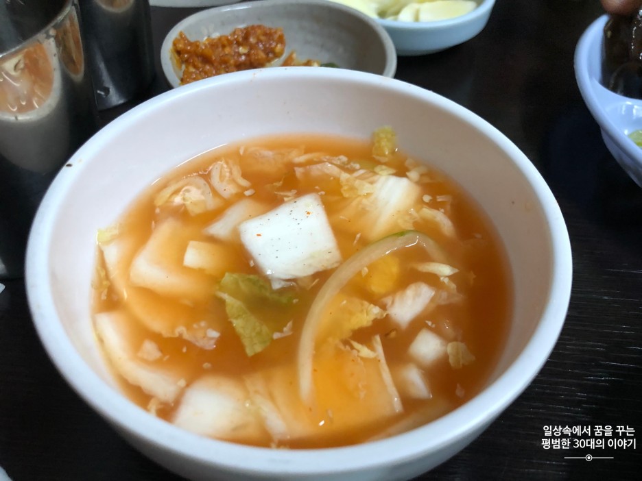 내가 직접 고기를 구워야 하고 내부도 허름한 데다 위생도 조금 신경이 쓰여서 처음엔 여기가 왜 이렇게 장사가 잘 되나 싶었는데 다 먹고 나니 그 이유를 알겠더라. 그 첫 번째는 종업원의 서비스, 두 번째는 반찬이 하나같이 다 맛있다는 것 그리고 마지막으로 세 번째는 서비스로 된장찌개와 돼지껍데기를 주는 것이 그 이유이지 않을까 싶다. 돼지갈비가 먹고 싶을 때 종종 가게 될 것 같다.