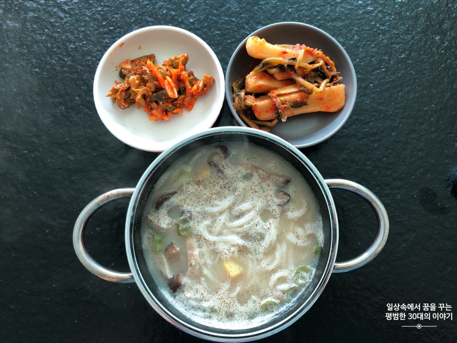 메뉴: 들깨칼국수, 오이지, 총각김치