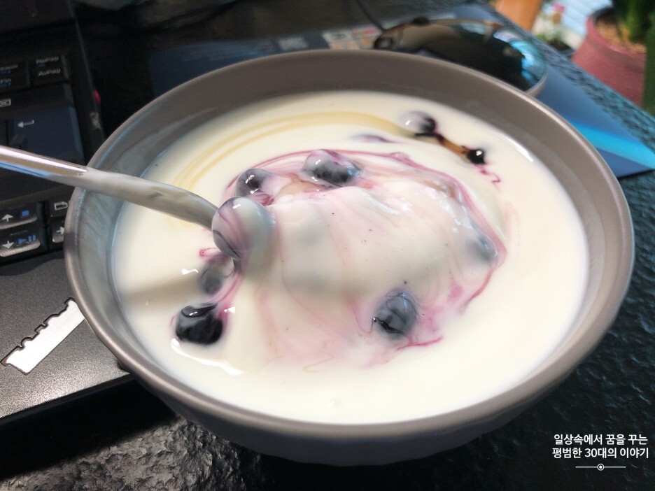 메뉴: 점심에 많이 먹은 탓에 저녁은 가볍게 블루베리 요거트