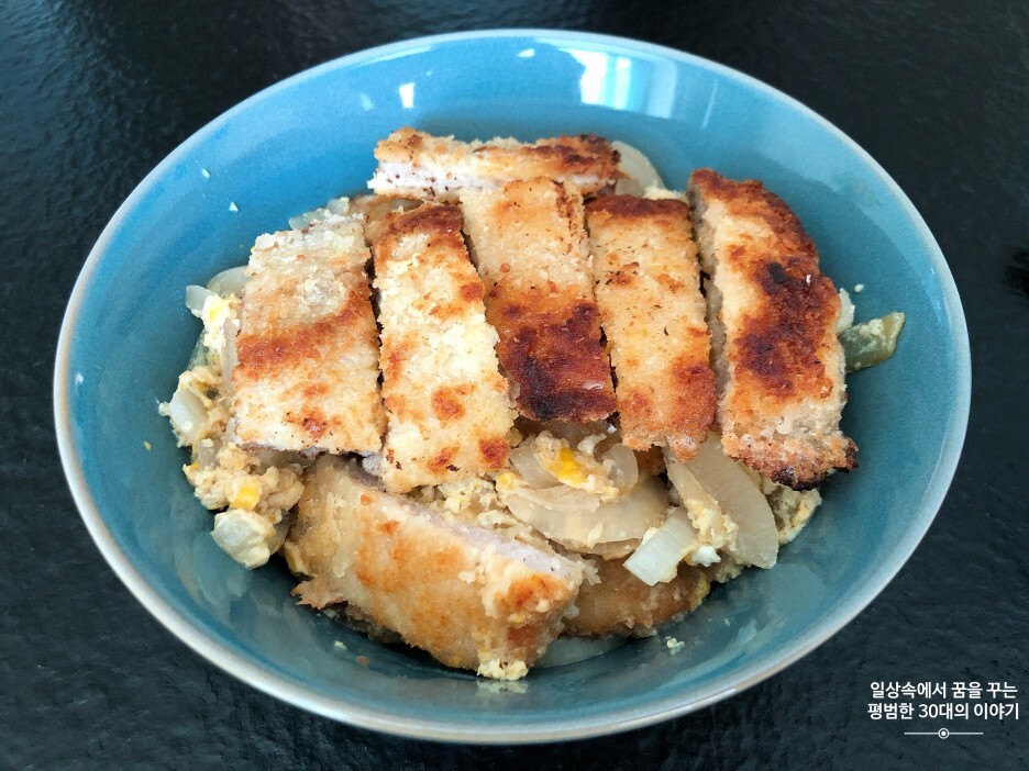 돈가스 덮밥 - 돈가스, 계란, 양파, 간장, 맛술, 설탕
