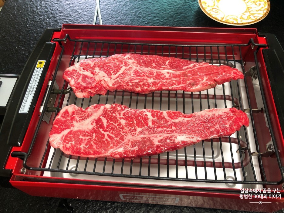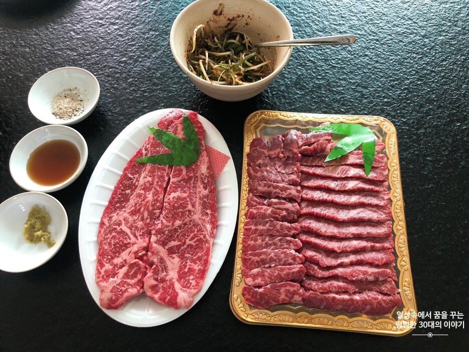 메뉴: 나의 탄생일을 기념하기 위해 조촐하게 집에서 짝꿍과 둘이 한우 사다가 구워 먹기! 이 망할 놈에 코로나 때문에 생일인데도 아무 데도 못 나가고 집에서 직접 요리해서 먹어야 하다니... 영원히 끝날 것 같지 않은 코로나