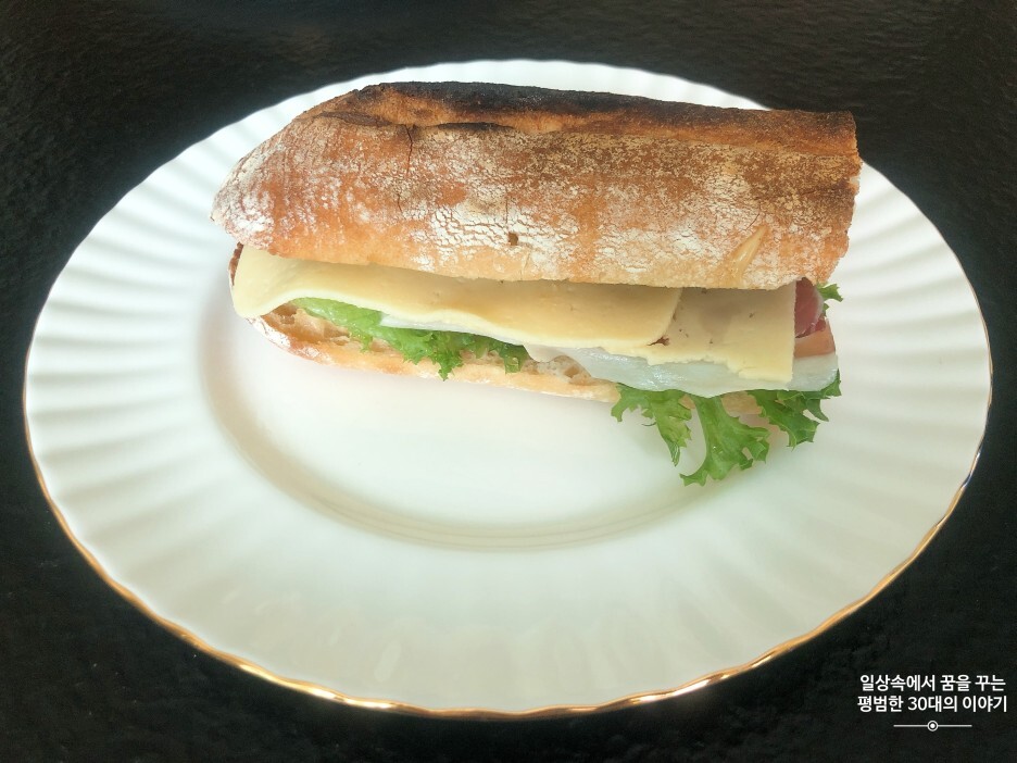 바게트 샌드위치 - 하바티 치즈, 로메인, 프로슈토, 바게트, 홀머스터드, 마요네즈, 꿀