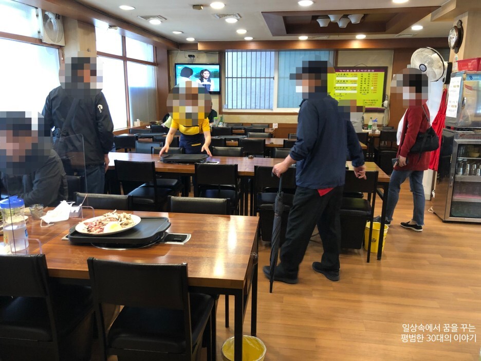 7호선 지하철역 보라매역에서 도보로 10분 거리에 위치해있으며 찾기 어렵지 않다. 공간도 아래 사진의 2배 정도 넓고 좌석도 많다. 아쉬운 건 좌석이 다닥다닥 붙어있어 뭔가 옆 테이블과 합석한 것 같은 기분(?). 공간을 둘러보니 연식이 꽤 오래돼 보이긴 했다. 예전에는 좌식이었다는데 지금은 모두 입식으로 바뀌었다.
