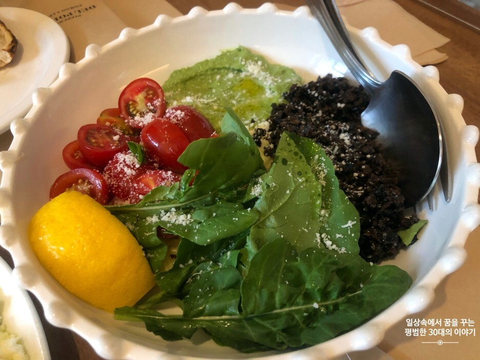 어쨌든 우리가 주문한 메뉴 두 가지 모두 신선하고 맛이 있었다. 놀라운 맛은 아니지만 자꾸 끌리고 생각나는 맛이랄까? 안에 들어가는 재료를 보면 특별할게 없기 때문에 뛰어나게 맛있기가 힘든데 이상하게 자꾸 손이 간다. 특히 화덕에 구워낸 빵과 루콜라 페스토는 이거 뭐지 싶을 정도로 맛있었다.