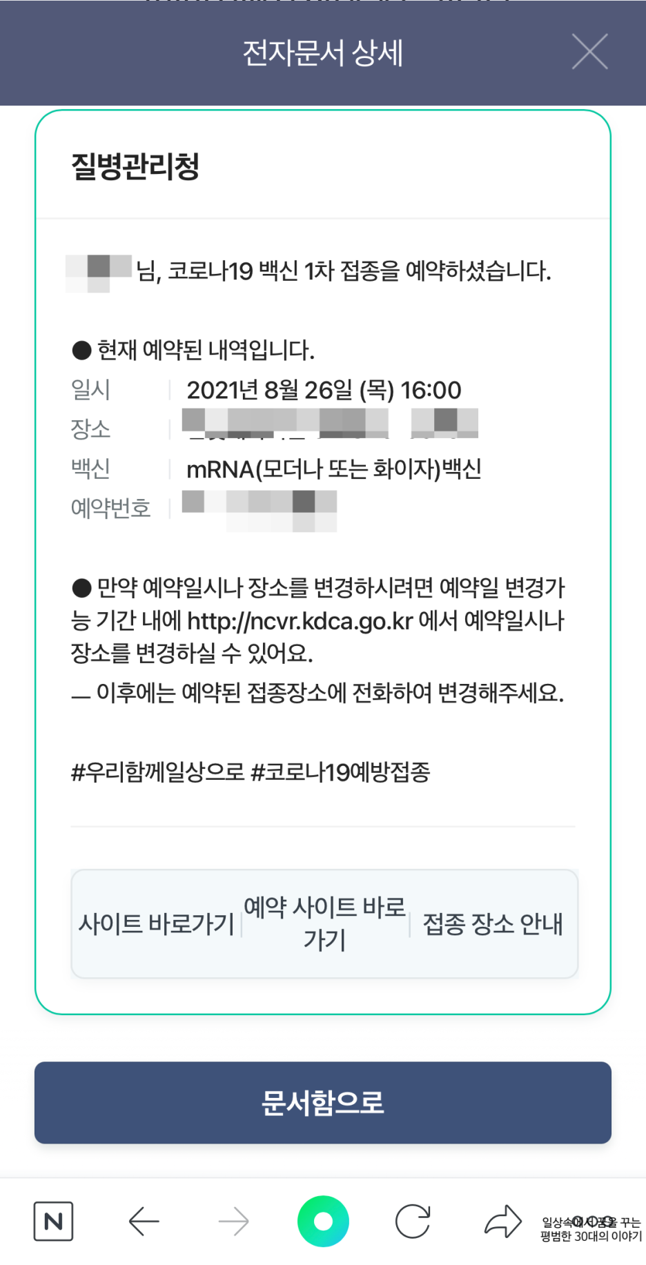 그리하여 나는 18~49세 백신 접종의 첫 날인 8월 26일에 백신을 접종하게 되었다. 요 근래 들어 가장 감격스러운 순간이 아닐 수 없다. 내일은 남편 예약 접종 날이니 내일까지 성공해서 우리 부부 얼른 코로나로부터 안전해지기를!