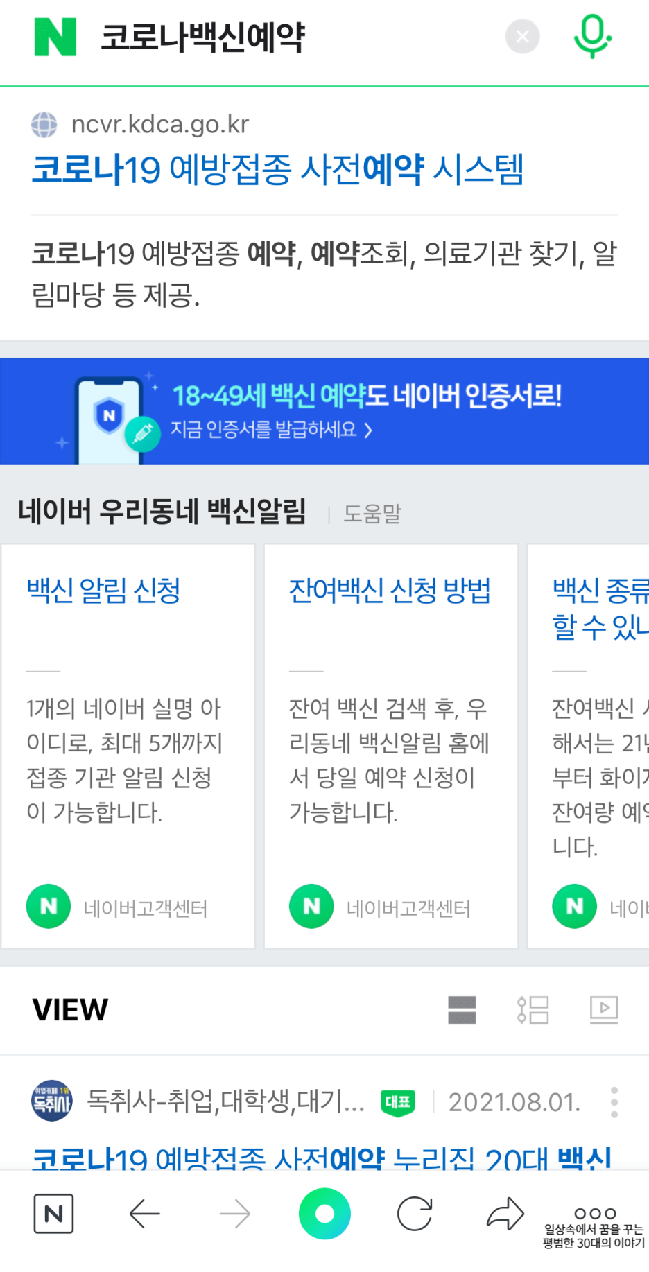[출처] [안내] 🕗18~49세 접종, 네이버앱+간편인증 조합으로 빠른 예약 🏃|작성자 네이버 회원