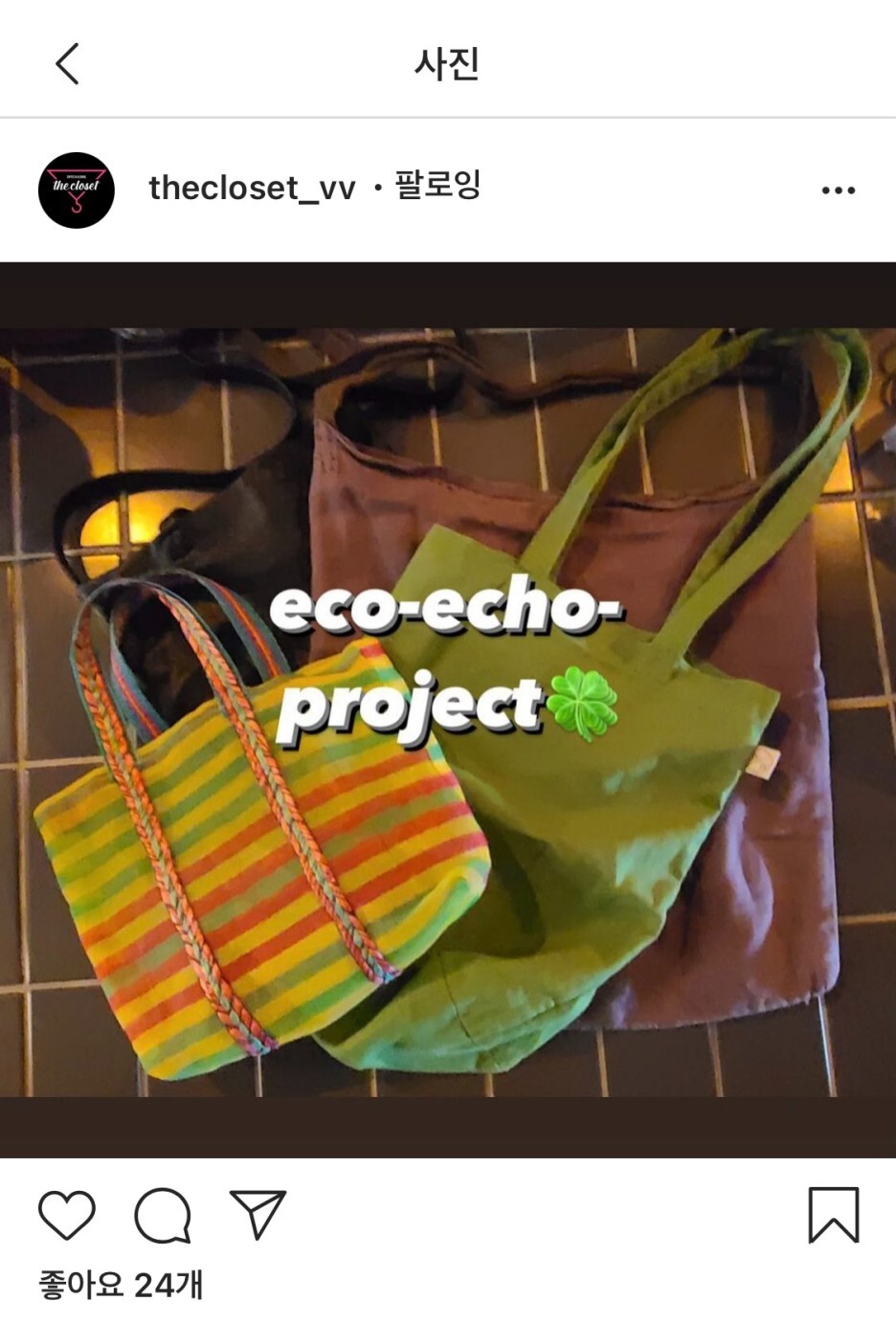 직접 만든 에코백이라 당근마켓에 판매하기는 좀 그렇고 아름다운가게나 굿윌 스토어에 기증하기도 어려울 것 같아서 에코백 기증을 알아보던 중 알게 된 더클로짓. 더클로짓에서는 1회용 쇼핑백을 사용하지 않고 에코백을 기증받아 1회용 쇼핑백 대신 사용하는 eco-echo-project를 진행하고 있다.(블로그 포스팅일 기준, 향후 변경될 가능성 있음) 나의 상황에 딱 맞는 프로젝트가 아닌가!!! 그래서 바로 사용하지 않는 에코백을 정리하여 택배로 기증하였다. 직접 방문해서 기증하면 더 좋았겠지만 거리두기 4단계인 지금, 대중교통을 이용해서 다녀오기엔 어려움이 있어 택배로 보냈다. (당연히 선불) 조만간 코로나 백신 맞고 시원한 수제맥주 마시러 더클로짓에 다녀와야지. (생각만 해도 신남)