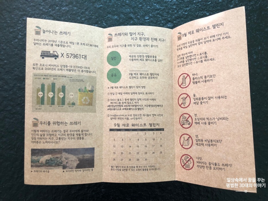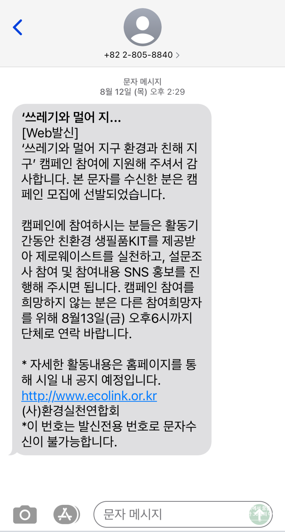지난달, 제로 웨이스트 카페에 올라온 글을 보고 '쓰레기와 멀어 지구, 지구 환경과 친해 지구' 캠페인을 신청했다. 신청하고서 아무 연락이 없기에 잊고 있었는데 지난주 목요일에 캠페인 모집에 선발되었다는 문자를 받았다.
