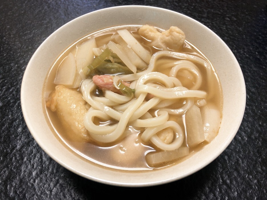 오뎅우동 - 멸치, 다시마, 무, 오뎅, 간장, 맛소금, 대파, 나가사끼 우동면