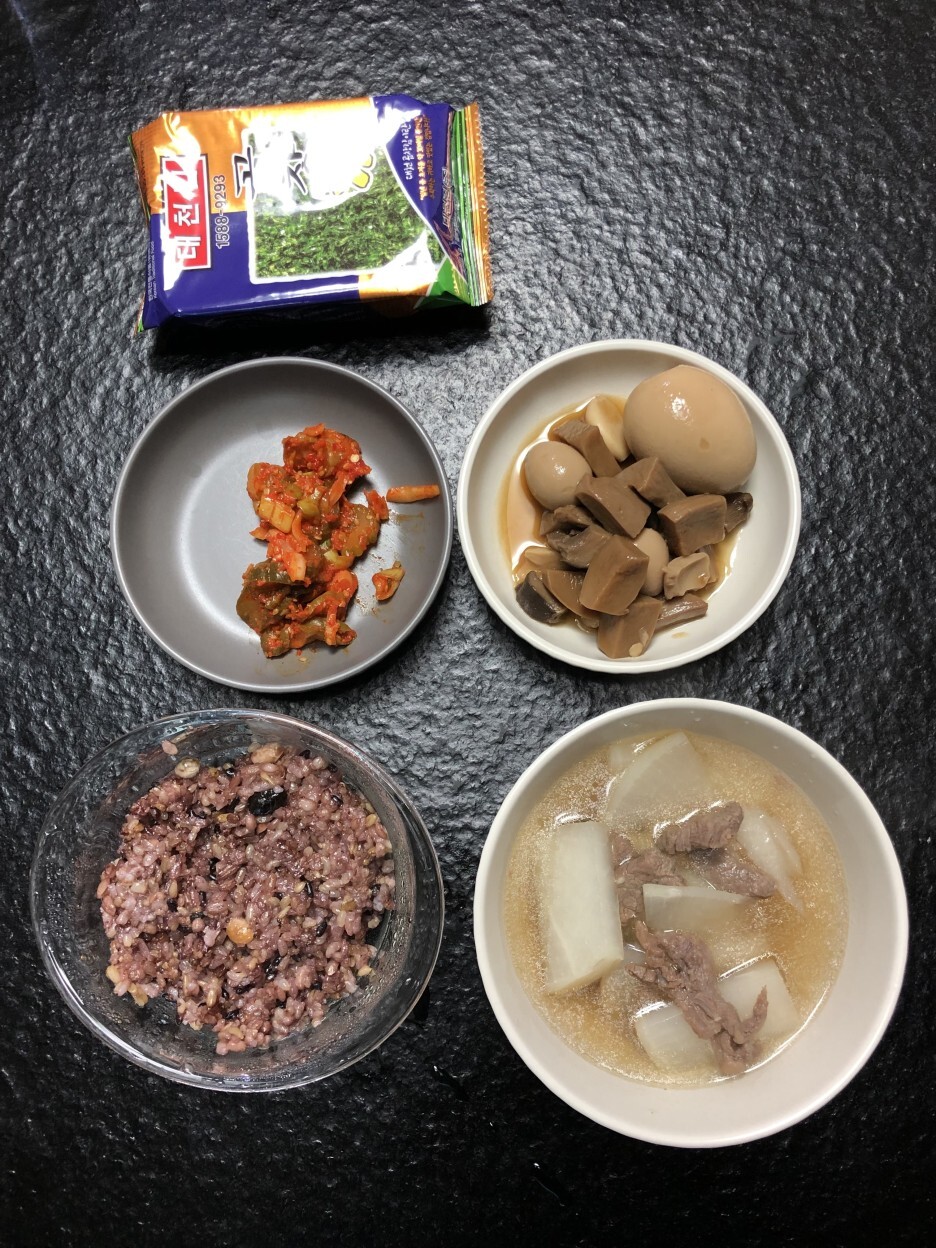 메뉴: 김, 오이지, 장조림, 뭇국