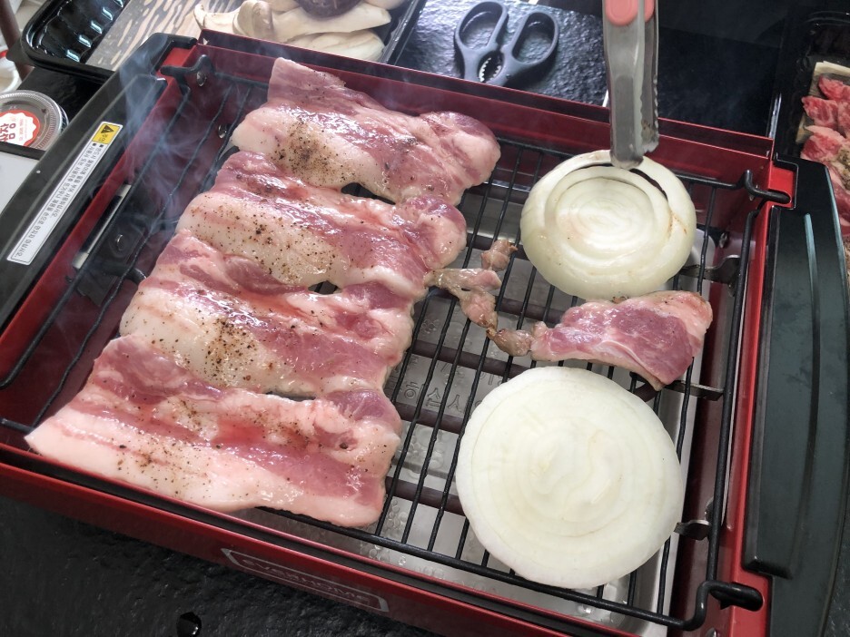 메뉴: 지난주 주말에 이어 집에서 열심히 가족들과 온갖 재료 구워 먹기(양 갈비, 삼겹살, 소갈빗살, 안심, 버섯, 양파, 새우)