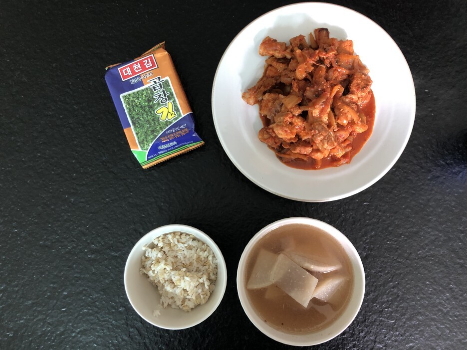 | 화요일(8/31) | 점심: 김, 오이지, 장조림, 뭇국 저녁: 제육볶음, 뭇국, 김 |