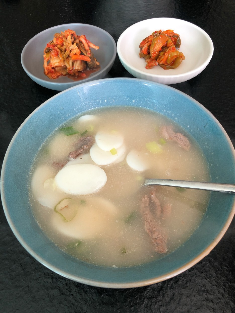 메뉴: 떡국, 오이지, 김치