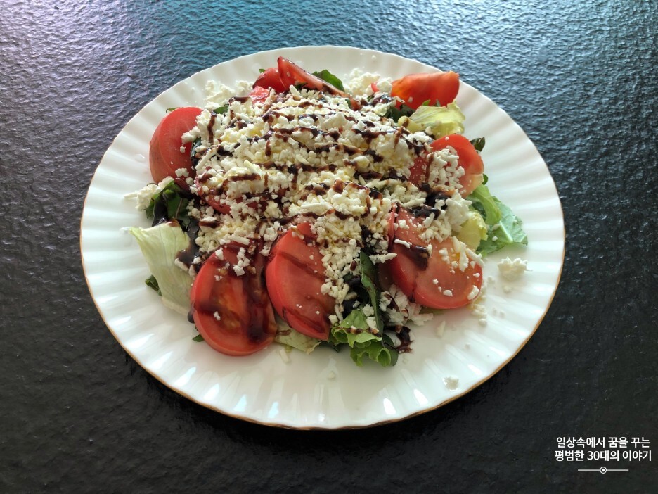 페타치즈 샐러드 - 샐러드 야채, 토마토, 페타치즈, 올리브오일, 발사믹 식초