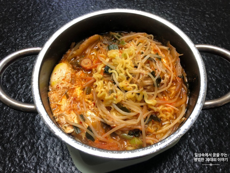 라면 - 숙주나물, 계란, 대파, 김치, 라면
