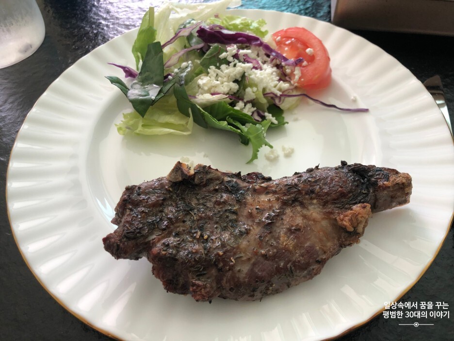 메뉴: 램숄더랙 오븐구이, 페타치즈 샐러드