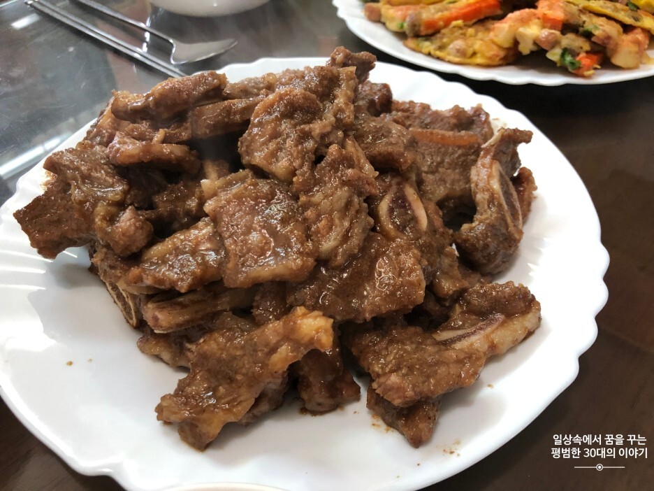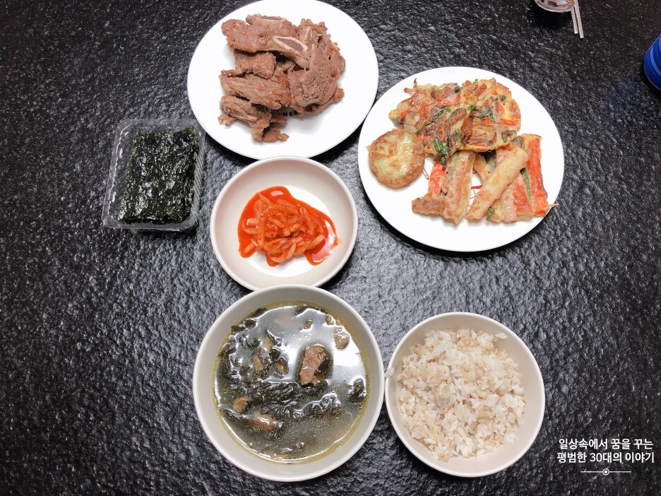 메뉴: 명절 음식 먹어치우기! 소갈비, 전, 무생채, 미역국, 김