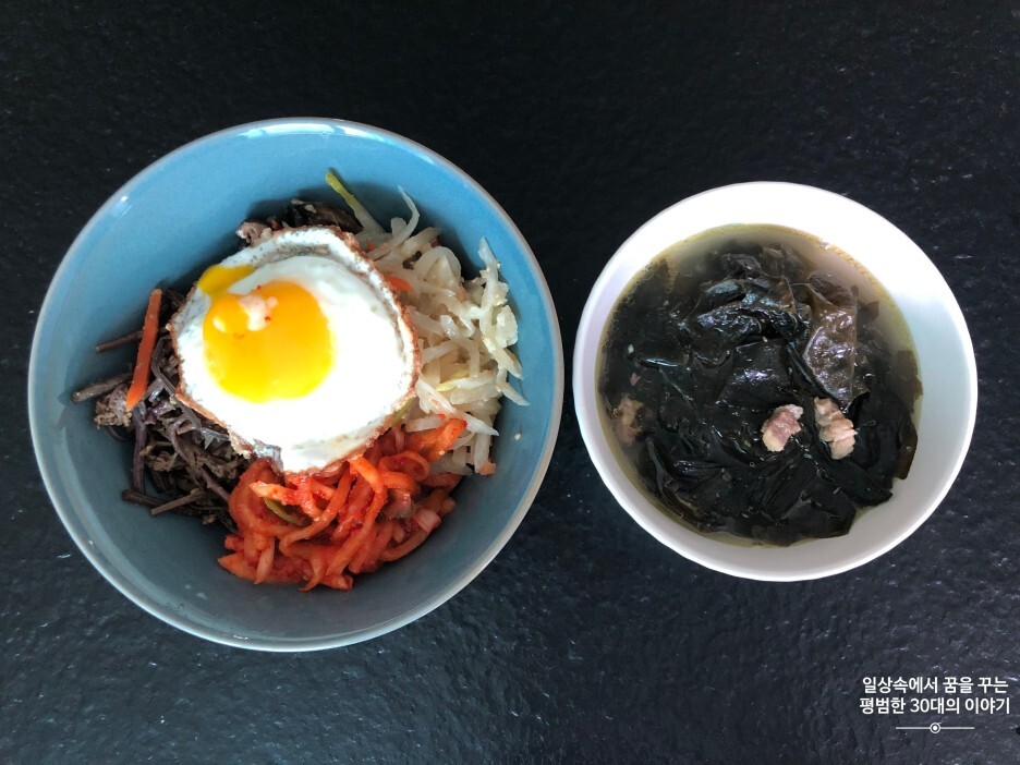 | 목요일(9/23) | 점심: 비빔밥, 미역국 저녁: 명절 음식 먹어치우기! 소갈비, 전, 무생채, 미역국, 김 |