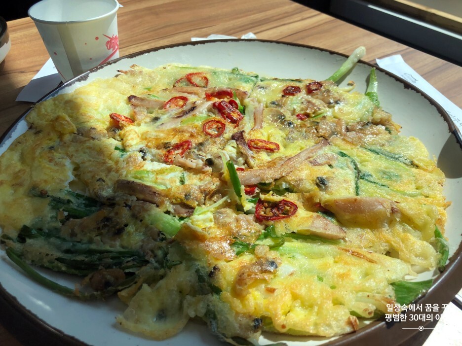 고기 왕만두, 바지락칼국수 그리고 해물파전은 아주 지극히 평범한 맛이었다. 바지락칼국수는 국물 맛이 시원하니 맛있었지만 바지락이 너무 듬성듬성 있어 아쉬웠고 해물파전은 계란을 많이 넣어서인지 바삭함이 떨어졌다. 그래도 뭐 평타는 하는 듯. 개인적으로 바지락칼국수는 신대방삼거리역에 있는 즉석 바지락 손칼국수가 최고인 듯! 그래도 풍경 좋고, 창문으로 살랑살랑 바람 들어오고, 깨끗하고, 종업원 친절하고, 화장실 궁궐 같고, 좋은 점도 많은 것 같다. 석모도에서 점심을 먹어야 한다면 이곳 추천!