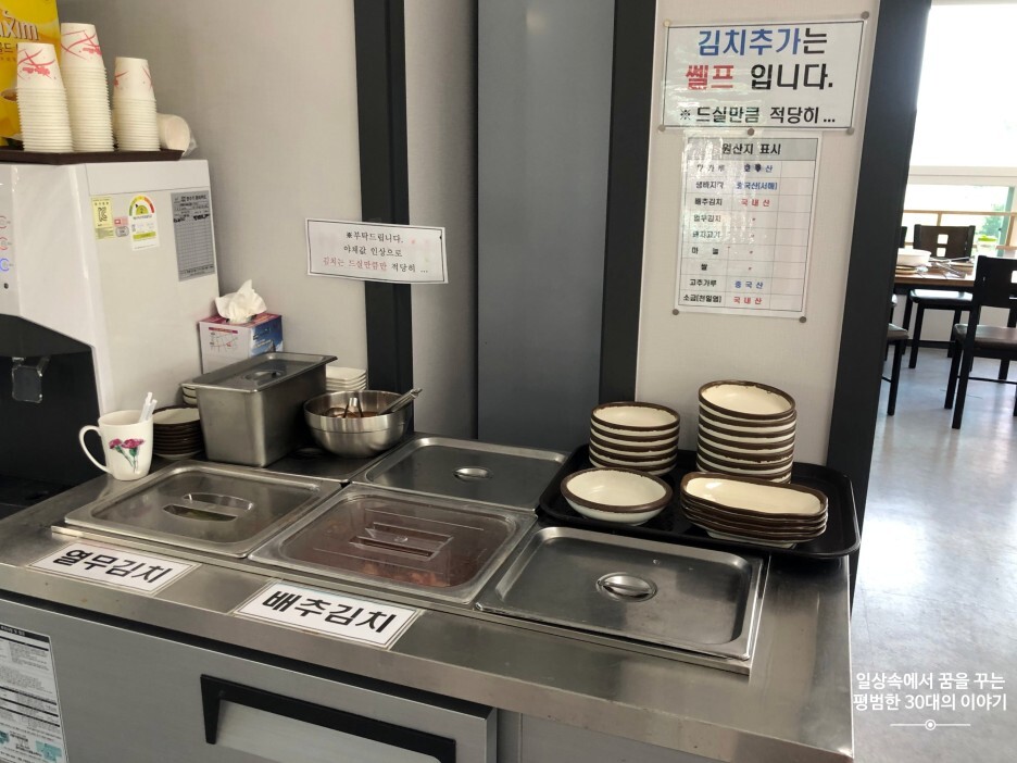 후기를 보면 이전에는 식당이 협소했다고 하던데 이번에 새로 단장을 한 건지 넓고 깨끗했다. (앞에 주차장이 좁은 건 좀 아쉬웠지만)