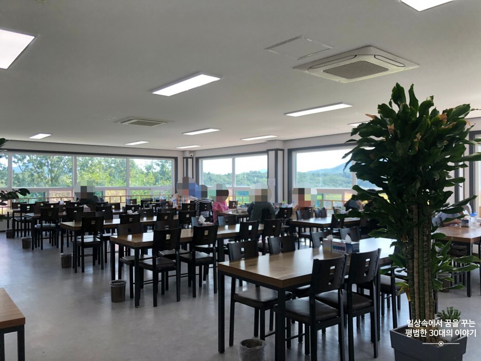 식당 내부는 아래 사진에서 볼 수 있듯이 넓고 깨끗하며 사방에 있는 창으로 보이는 풍경이 너무 좋아 속이 뻥 뚫리는 것 같다. 운이 좋게 창가 쪽 좌석이 하나 남아있어 밖으로 보이는 자연 풍경을 바라보며 식사를 할 수 있었다.