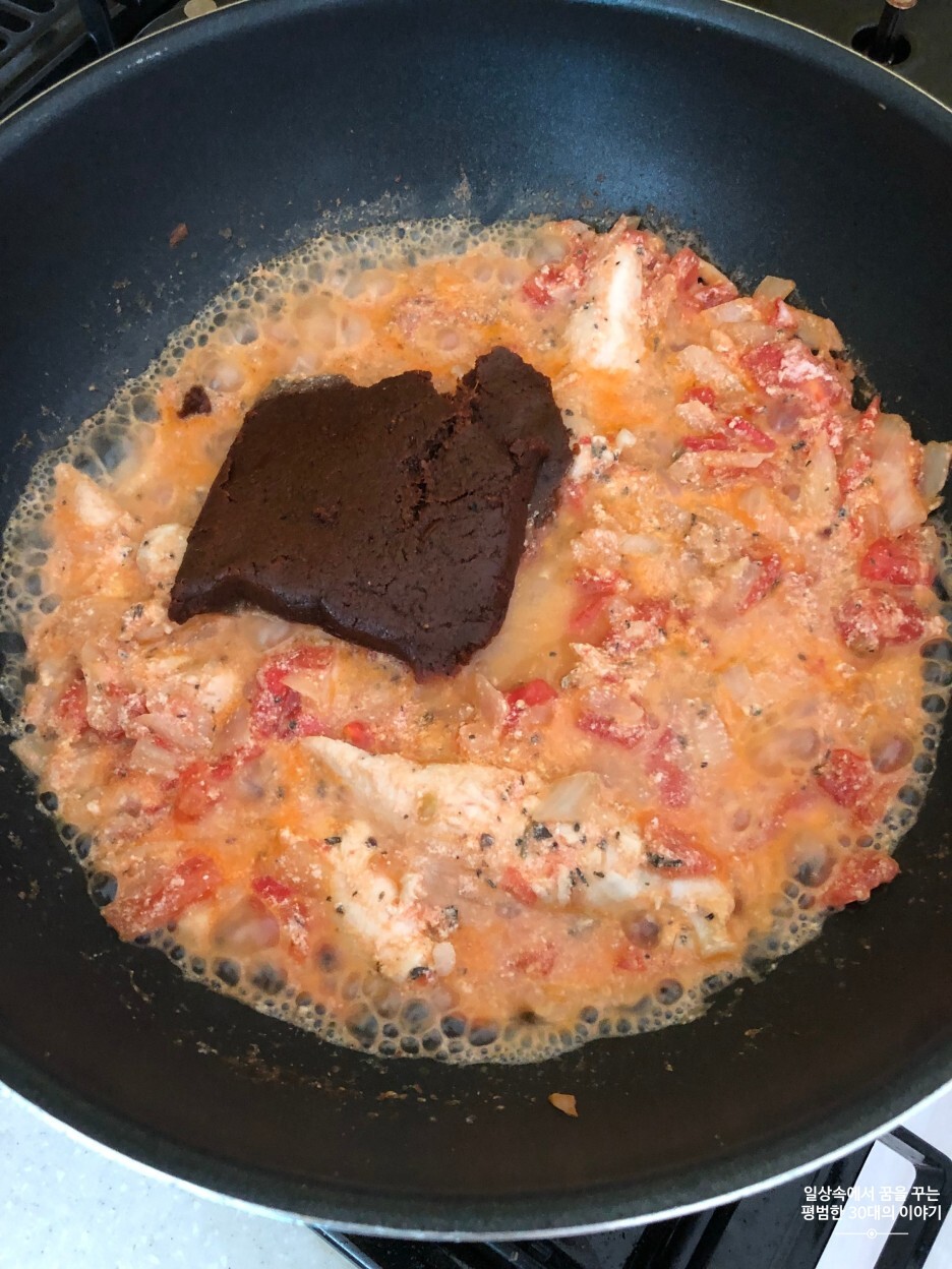 이날은 분홍색 인도 카레 페이스트가(페이스트마다 겉표지 색상이 다름) 있길래 그걸 사용했어요.