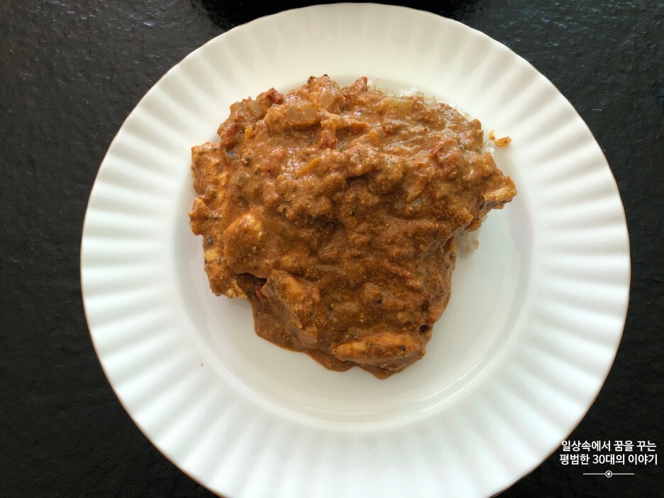 다양한 인도 카레 페이스트를 사용해 봤는데 개인적으로 Kitchens of India에서 나온 게 제일 맛있더라고요.