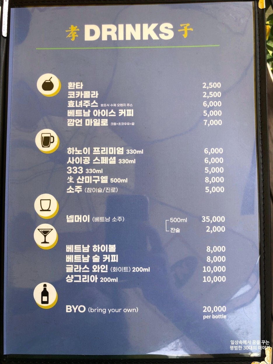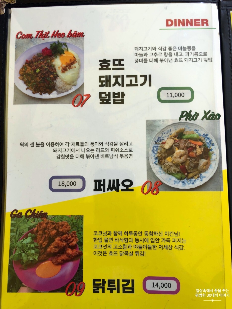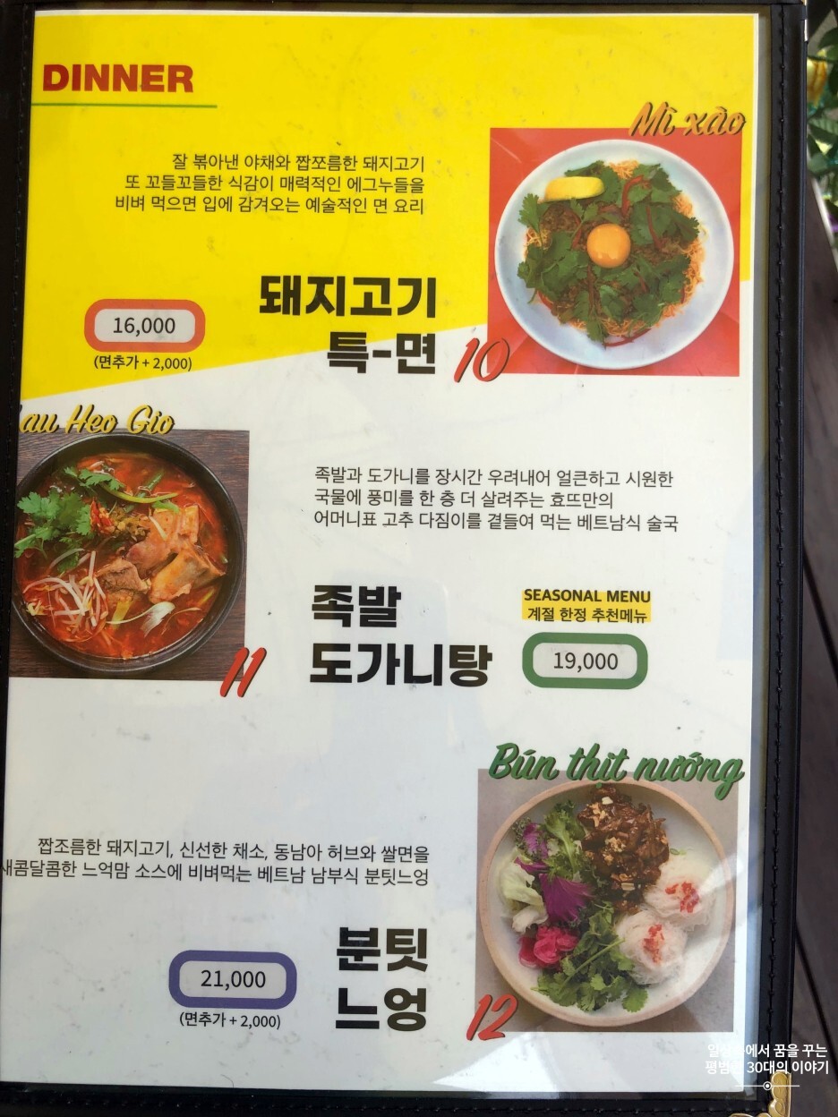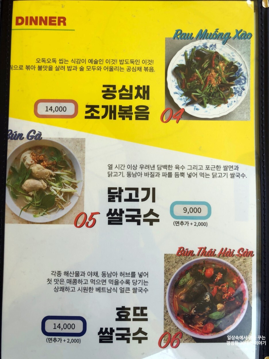 분위기는 흡사 베트남의 왁자지껄한 대도시 뒷골목에 있을 법한 인기 좋은 현지 식당인지라 코로나로 오랫동안 해외여행이 어려운 요즘 가기에 더할 나위 없이 좋은 곳 같다. 그래서 인스타그램에서 인기가 좋은 지도 모르겠다. 어쨌든, 식사하는 내내 여기가 한국인지 베트남인지 알기 어려울 지경으로(옆에서 한국말만 안 들렸으면 완벽했을 듯) 해외여행을 온 것 같아서 음식 맛보다도 분위기 때문에 내내 기분이 좋았다.