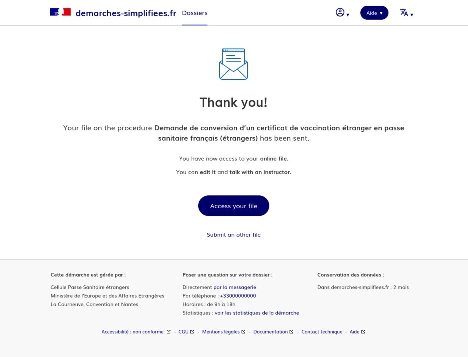 Demande de conversion d’un certificat de vaccination étranger en passe sanitaire français (étrangers) · demarches-simplifi